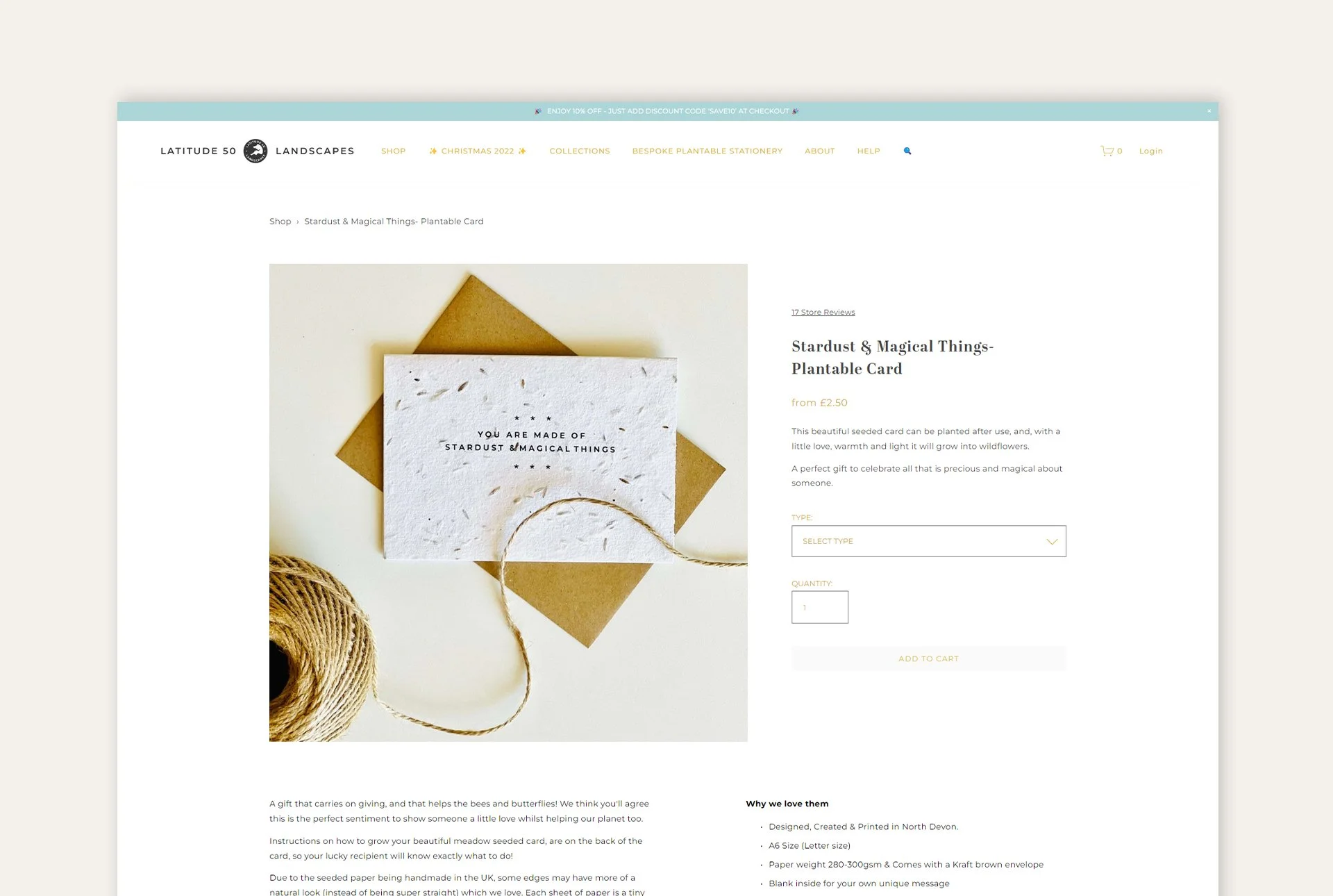 SUMMARY: Latitude 50 is a stationery & gifting brand with a planet-friendly, locally made ethos like no other. From plantable stationery and reusable gift wrap to bespoke plantable business collateral, everything in the Latitude 50 range has been consciously crafted in the Westcountry.