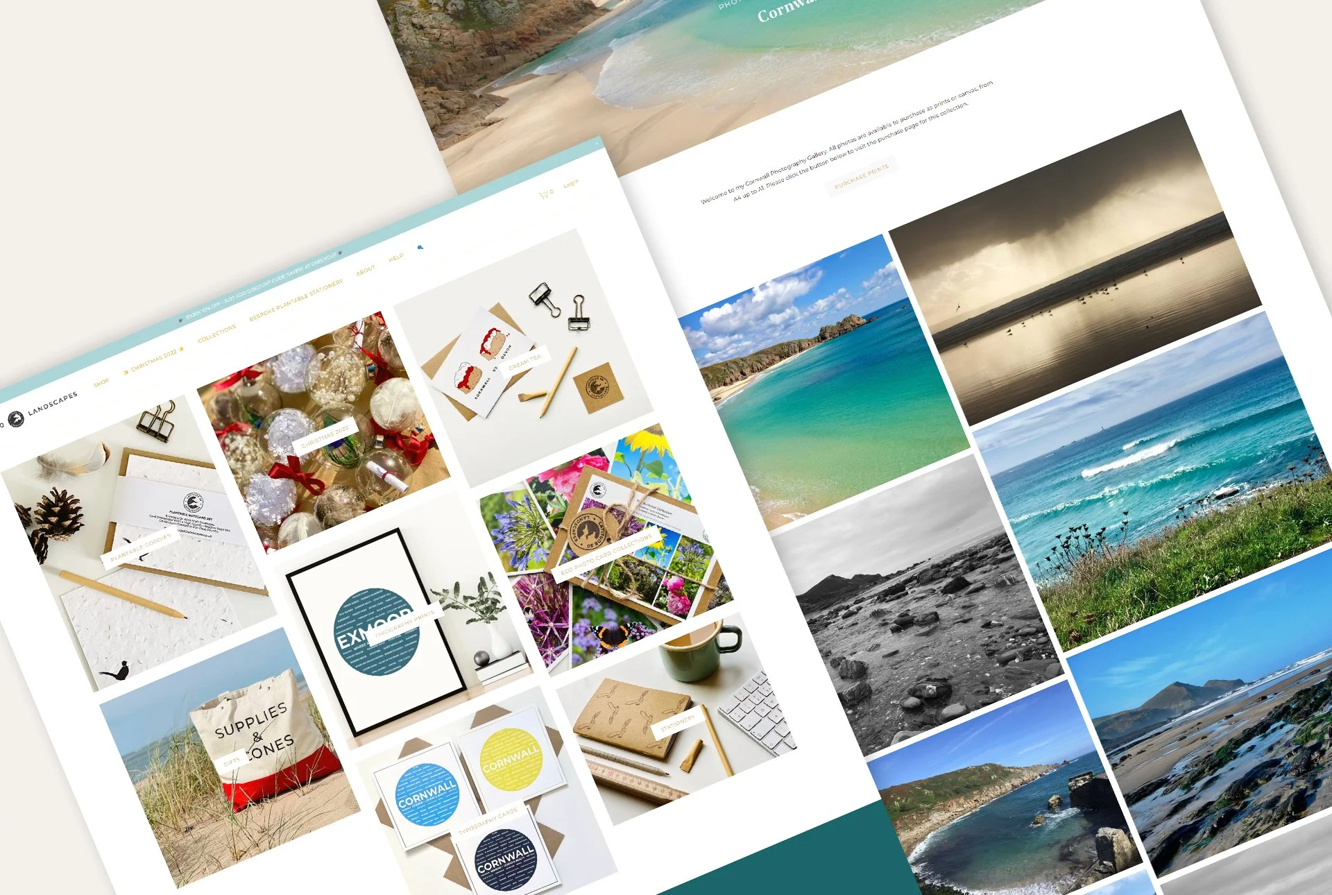 Gallery pages that linked through to product pages for Lucy’s photography collection, to showcase her photography work and make it easy for customers to purchase prints.