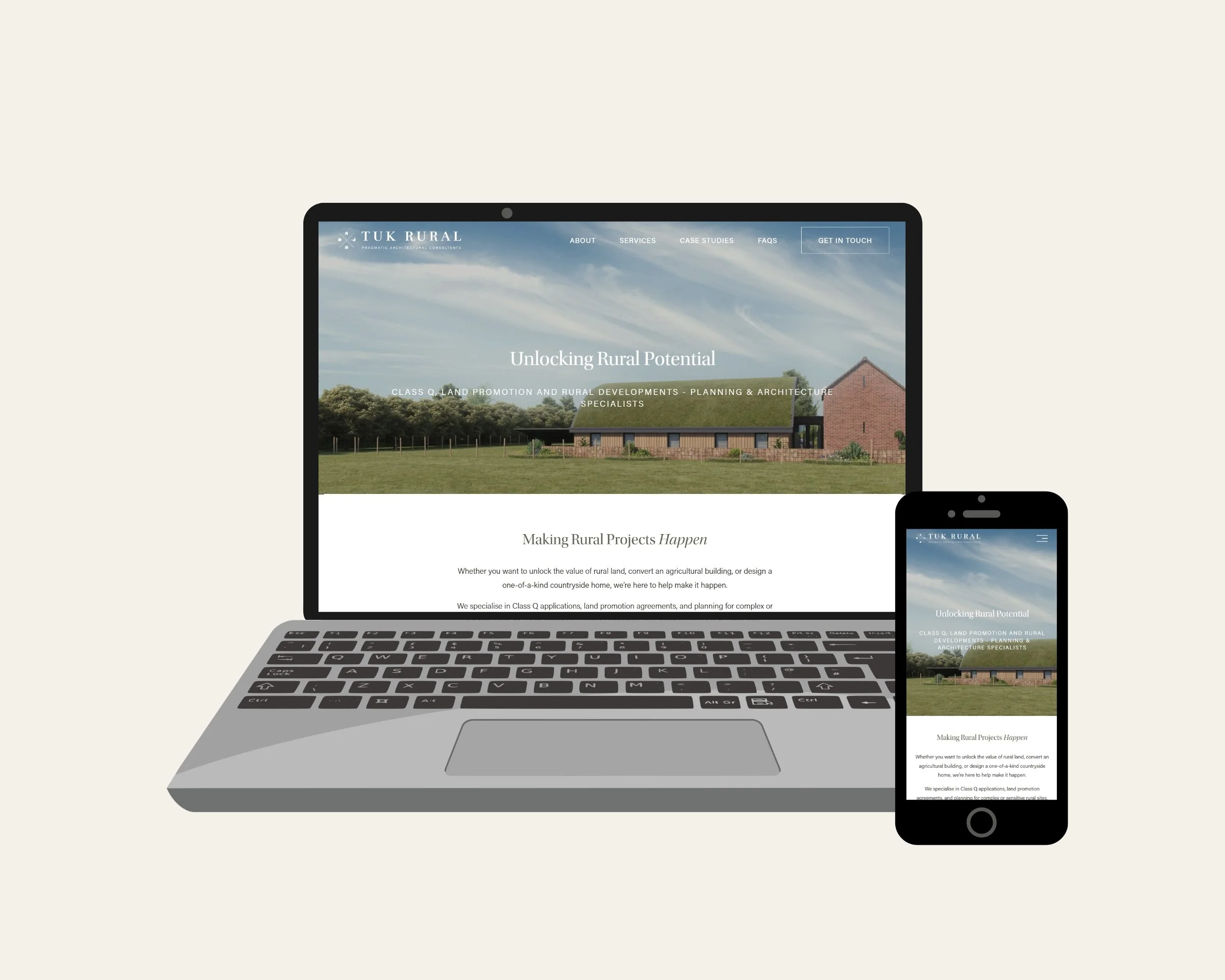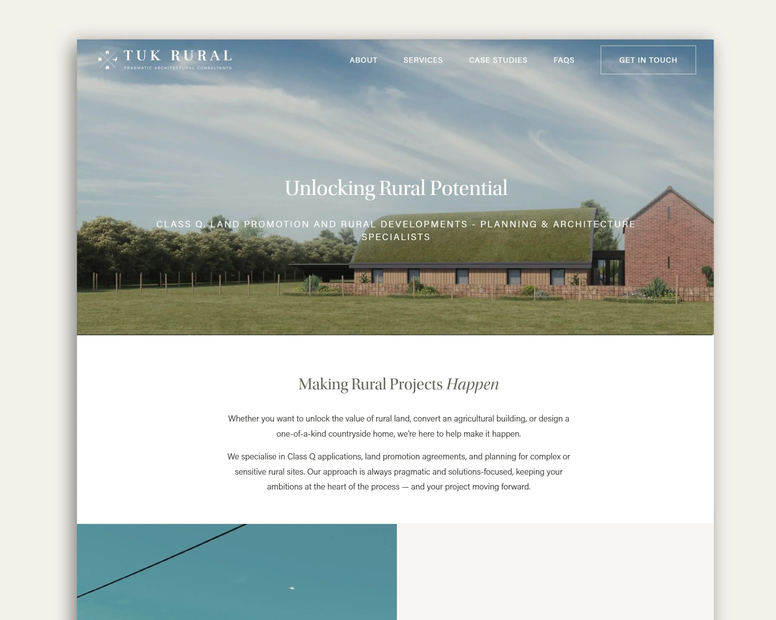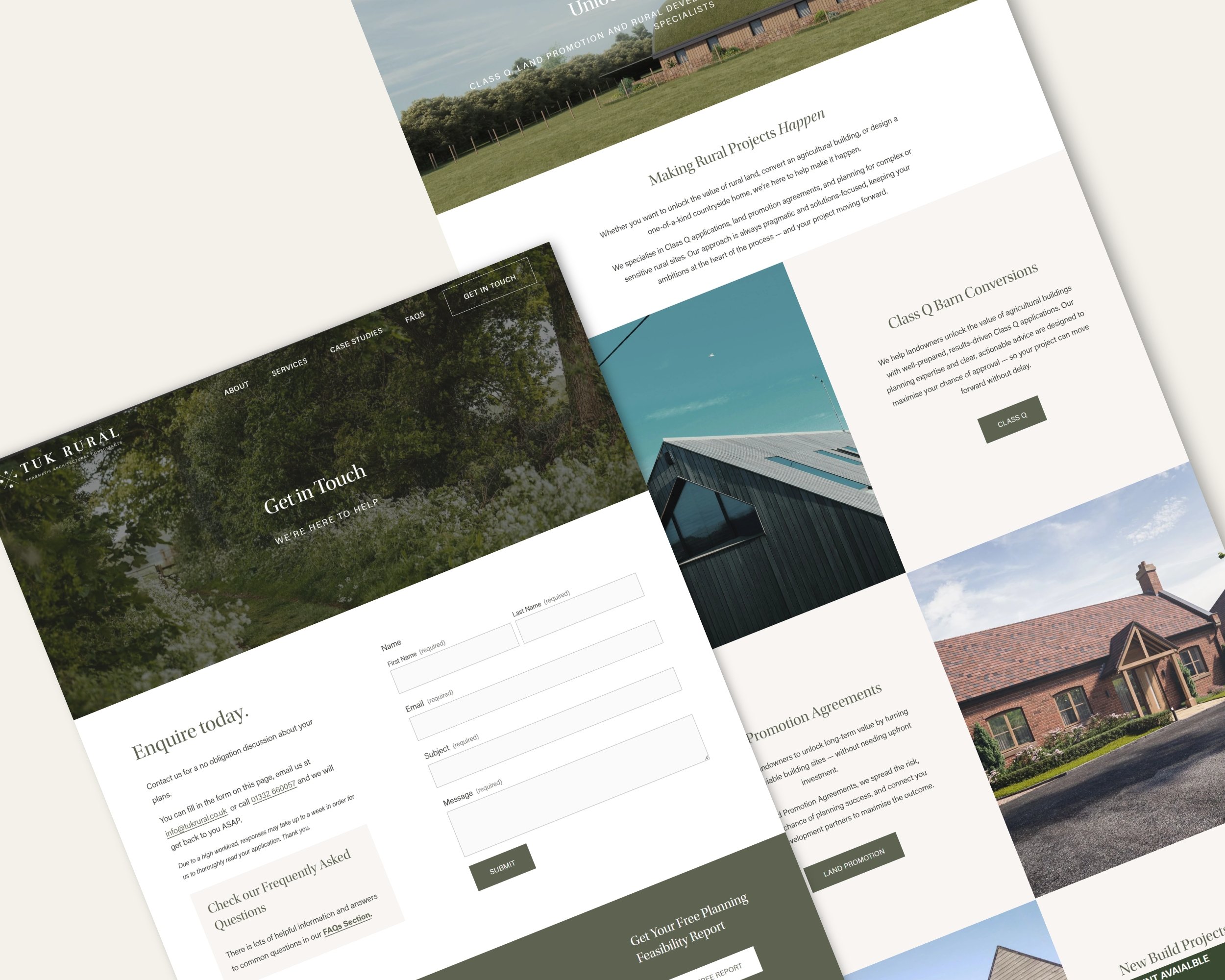 SUMMARY: After completing the creation of a whole new brand identity for TUK Rural, they then needed a website to better connect with their target audience, rural land and property owners. Their service specialism is tailored specifically to rural planning and architecture and their website needed to showcase previous work, explain their service offering, and visually echo the focus of their brand and ideal client.